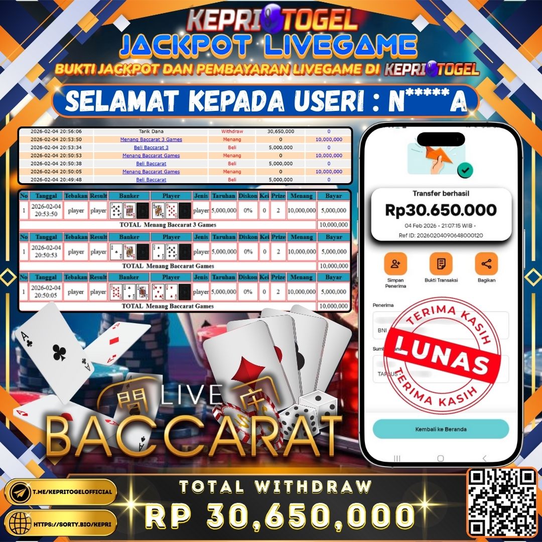 Kepritogel Jackpot Live Game Baccarat Rp30,650,000