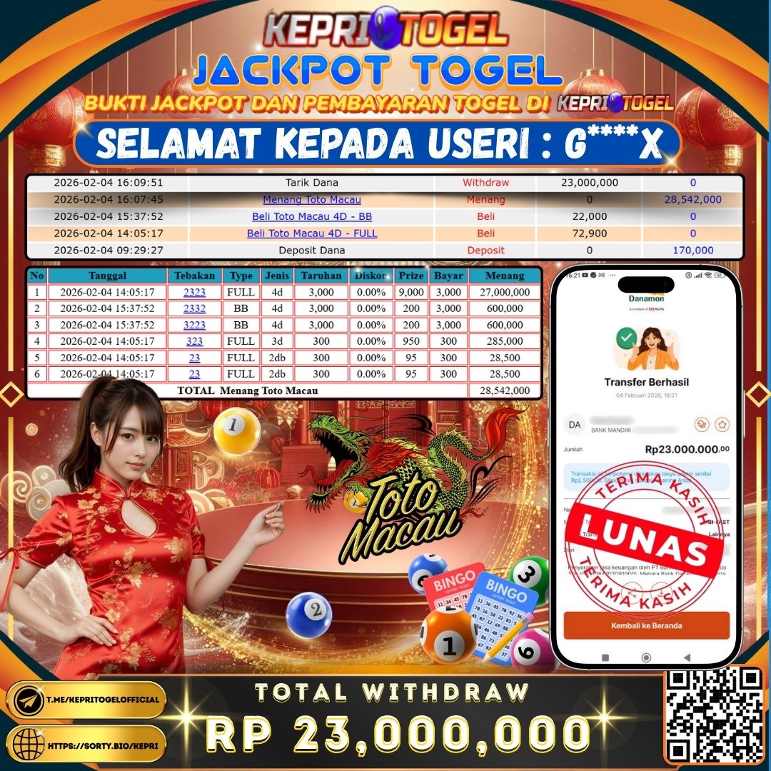 Kepritogel Jackpot Togel Toto Macao 4D Rp23,000,000