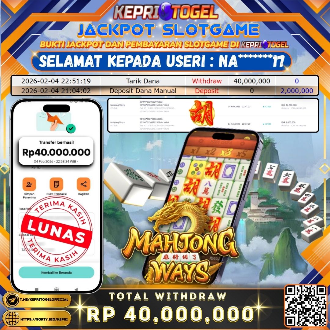 Kepritogel Jackpot Slot Mahjong Ways Rp40,000,000