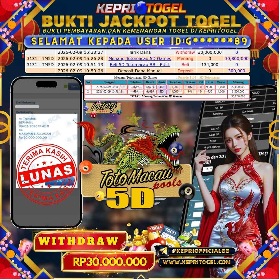 Kepritogel Jackpot Togel Toto Macau 5D Rp30,000,000