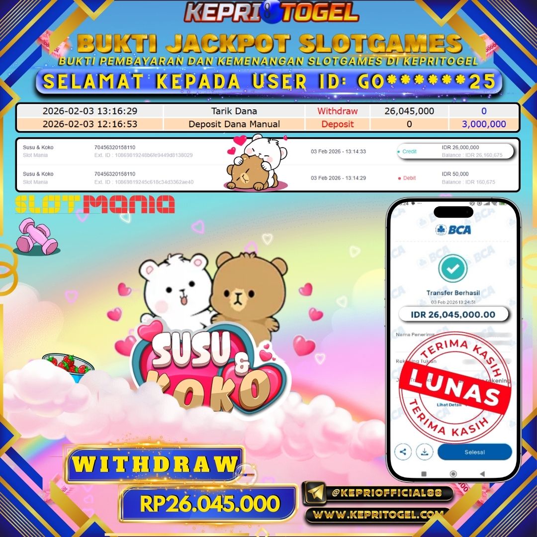 Kepritogel Jackpot Slot Susu & Koko Rp26,045,000