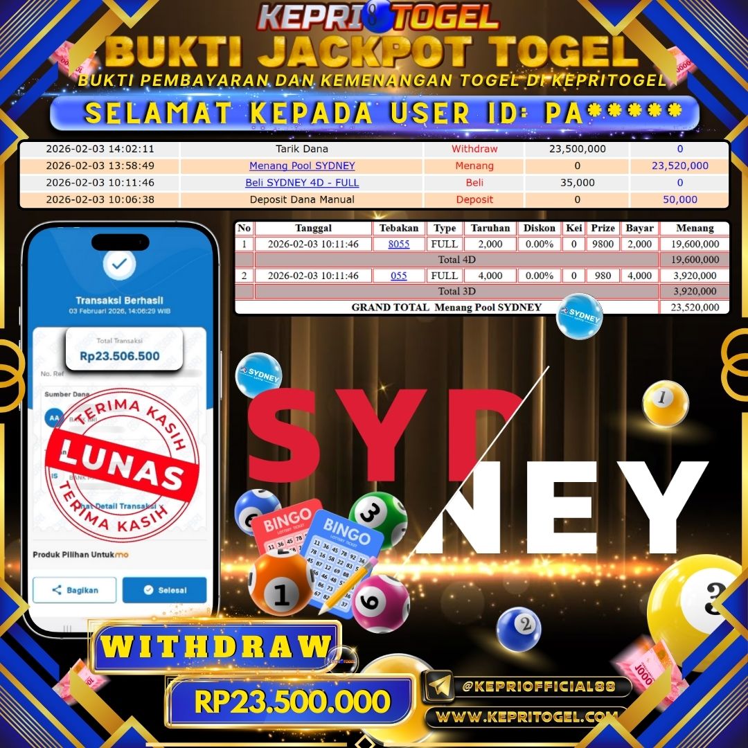Kepritogel Jackpot Togel Sydney Lotto Rp23,500,000