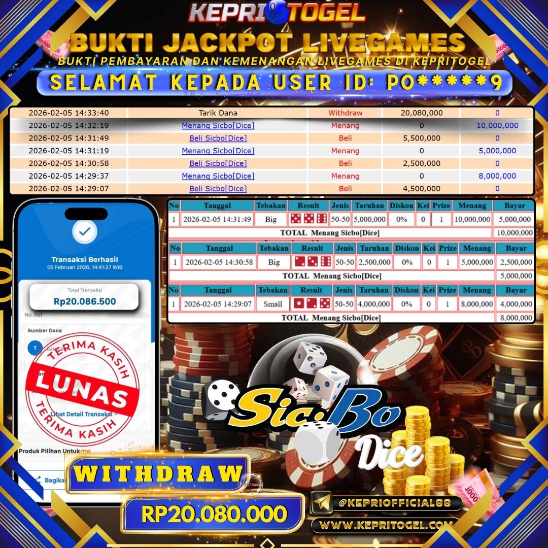 Kepritogel Jackpot Live Game Sicbo[Dice] Rp20,080,000