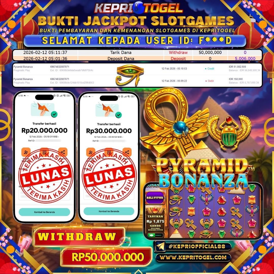 Selamat kepada UserId F***D telah berhasil mendapatkan kemenangan jackpot pada permainan Slot Pyramid Bonanza Kepritogel sebesar Rp50,000,000,- . Kepritogel situs terpercaya sejak dulu hingga saat ini , Untuk kemenangan berapapun pasti akan kami bayarkan . Jangan ragu bermain di Kepri Togel . Kami pihak Kepritogel Menyampaikan terima kasih kepada seluruh member Kepri Togel yang telah Percaya dan setia Bersama kami bermain di Kepritogel hingga saat ini