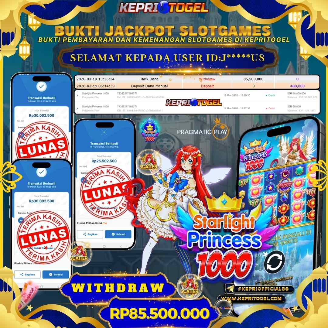 Selamat kepada UserId E****ION telah berhasil mendapatkan kemenangan jackpot pada permainan Slot Starlight Princess Kepritogel sebesar Rp75,000,000,- . Kepritogel situs terpercaya sejak dulu hingga saat ini , Untuk kemenangan berapapun pasti akan kami bayarkan . Jangan ragu bermain di Kepri Togel . Kami pihak Kepritogel Menyampaikan terima kasih kepada seluruh member Kepri Togel yang telah Percaya dan setia Bersama kami bermain di Kepritogel hingga saat ini.