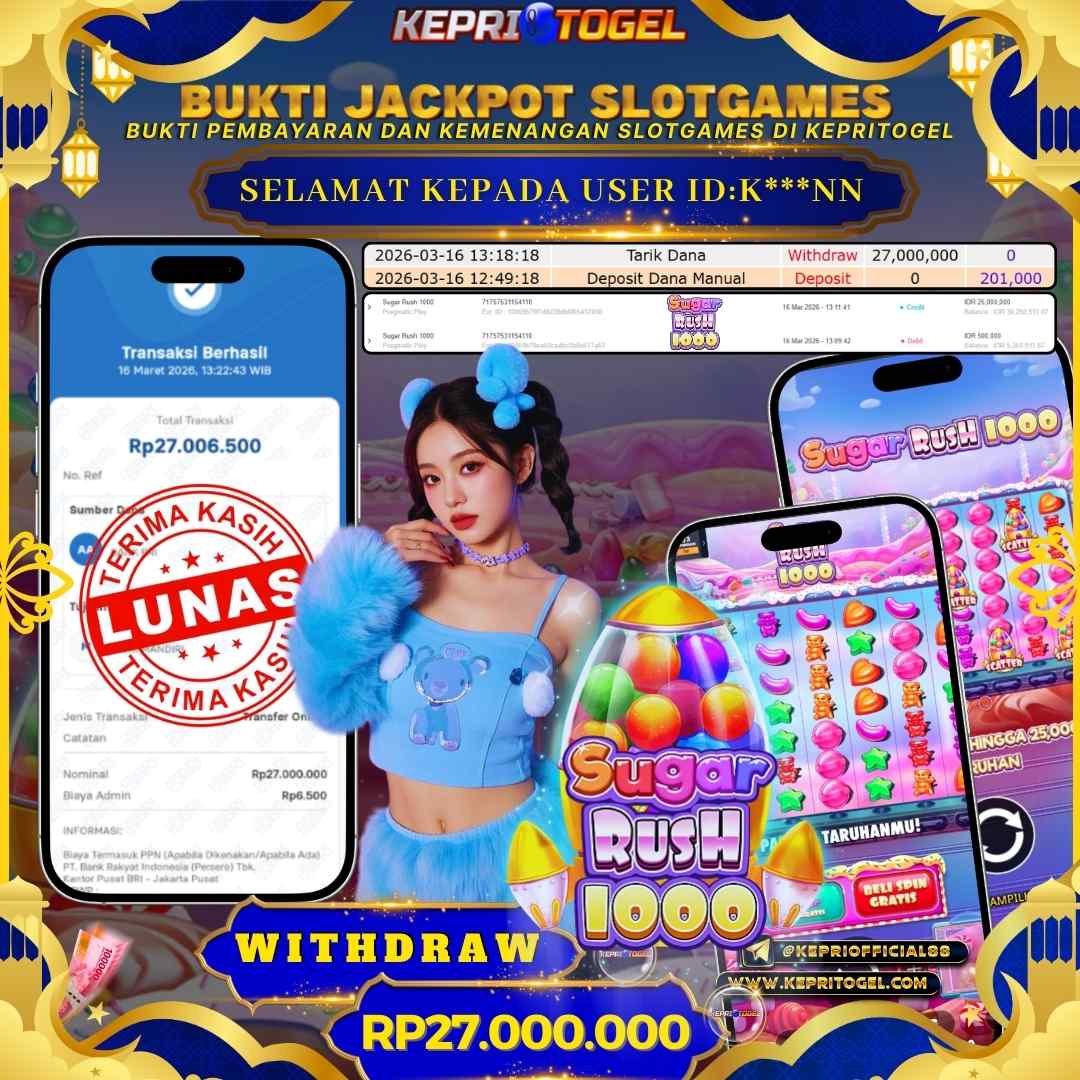 Selamat kepada UserId K***NN telah berhasil mendapatkan kemenangan jackpot pada permainan Slot Sugar Rush 1000 Kepritogel sebesar Rp27,000,000,- . Kepritogel situs terpercaya sejak dulu hingga saat ini , Untuk kemenangan berapapun pasti akan kami bayarkan . Jangan ragu bermain di Kepri Togel . Kami pihak Kepritogel Menyampaikan terima kasih kepada seluruh member Kepri Togel yang telah Percaya dan setia Bersama kami bermain di Kepritogel hingga saat ini.