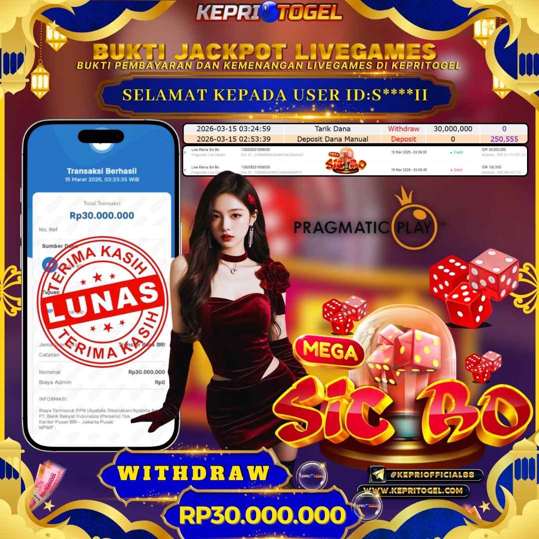 Selamat kepada UserId S****II telah berhasil mendapatkan kemenangan jackpot pada permainan Live Game Mega Sicbo Kepritogel sebesar Rp30,000,000,- . Kepritogel situs terpercaya sejak dulu hingga saat ini , Untuk kemenangan berapapun pasti akan kami bayarkan . Jangan ragu bermain di Kepri Togel . Kami pihak Kepritogel Menyampaikan terima kasih kepada seluruh member Kepri Togel yang telah Percaya dan setia Bersama kami bermain di Kepritogel hingga saat ini.