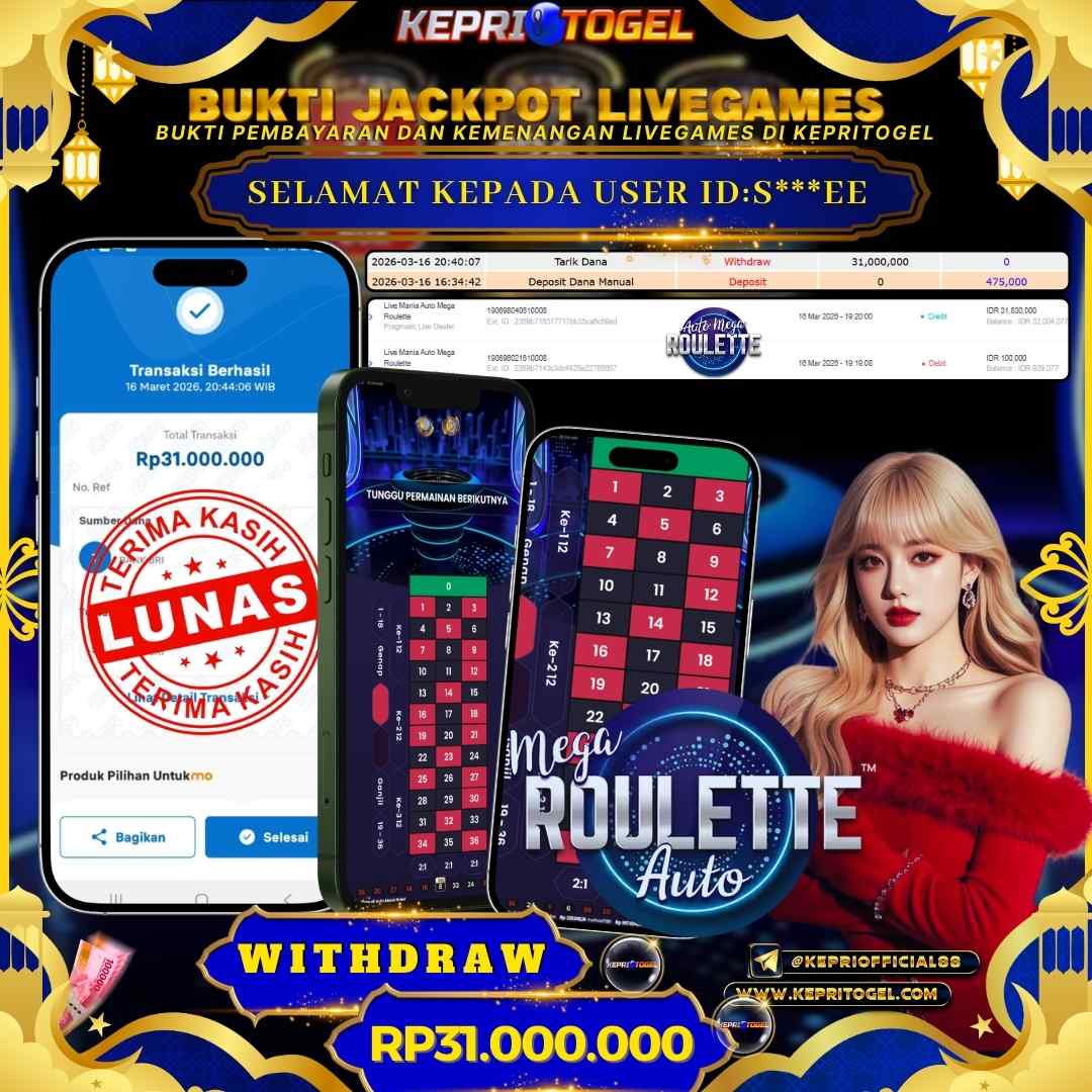 Kepritogel Jackpot Live Game Auto Mega Roullete Rp31,000,000