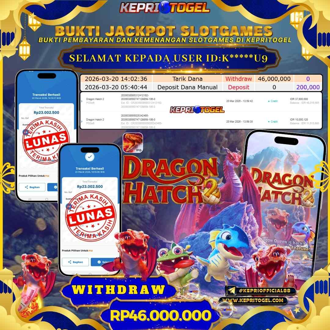 Selamat kepada UserId K*****U9 telah berhasil mendapatkan kemenangan jackpot pada permainan Slot Dragon Hatch 2 Kepritogel sebesar Rp46,000,000,- . Kepritogel situs terpercaya sejak dulu hingga saat ini , Untuk kemenangan berapapun pasti akan kami bayarkan . Jangan ragu bermain di Kepri Togel . Kami pihak Kepritogel Menyampaikan terima kasih kepada seluruh member Kepri Togel yang telah Percaya dan setia Bersama kami bermain di Kepritogel hingga saat ini.