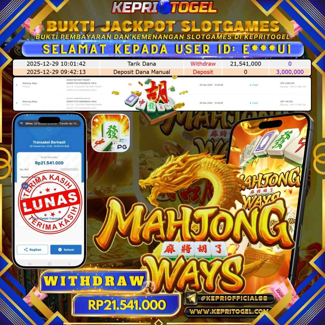 Kepritogel Jackpot Slot Mahjong Ways Rp21,541,000