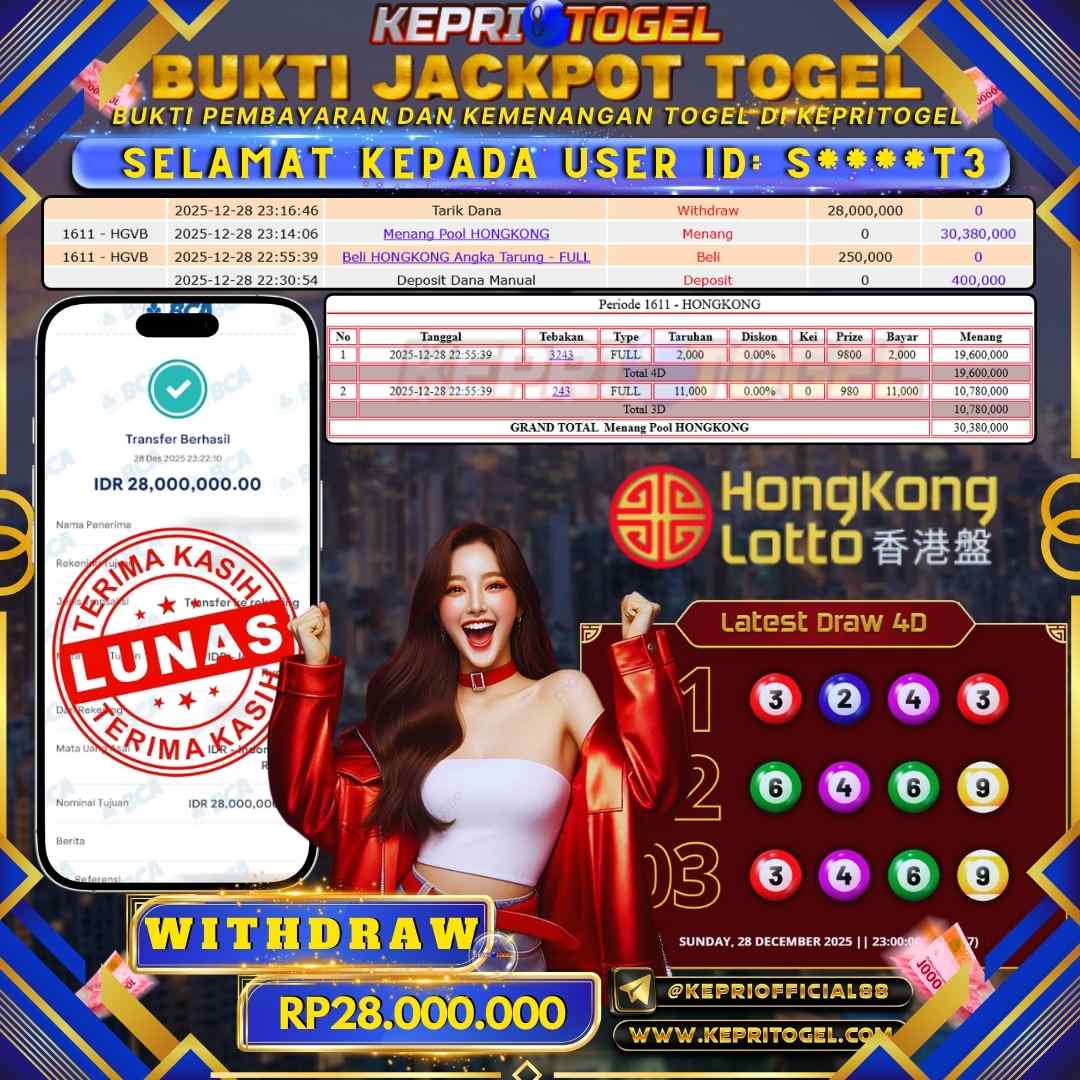 Kepritogel Jackpot Togel Hongkong Lotto Rp28,000,000