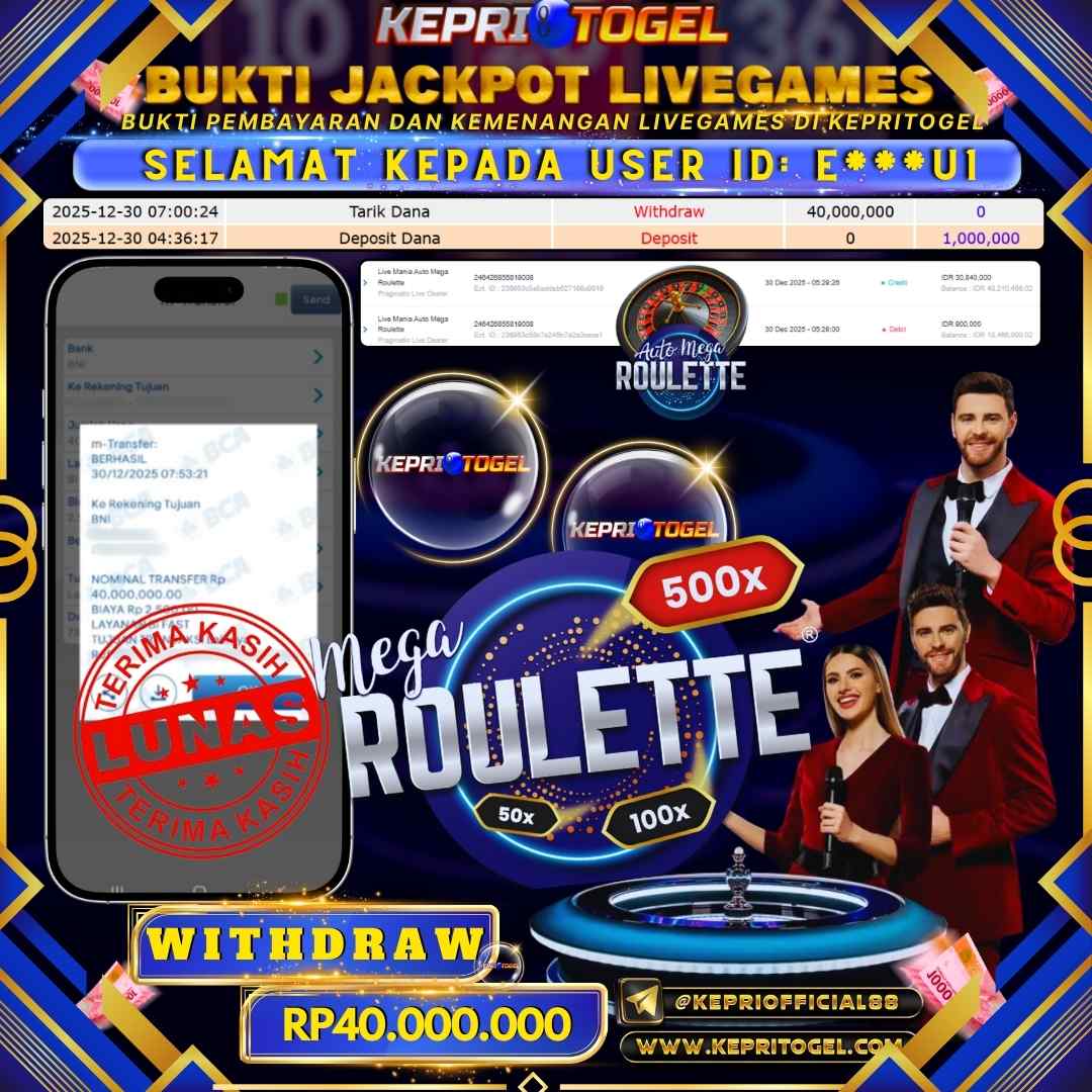 Kepritogel Jackpot Live Game Mega Roulette Rp40,000,000