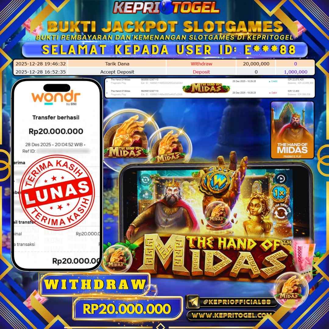 Kepritogel Jackpot Slot The Hand Of Midas Rp20,000,000