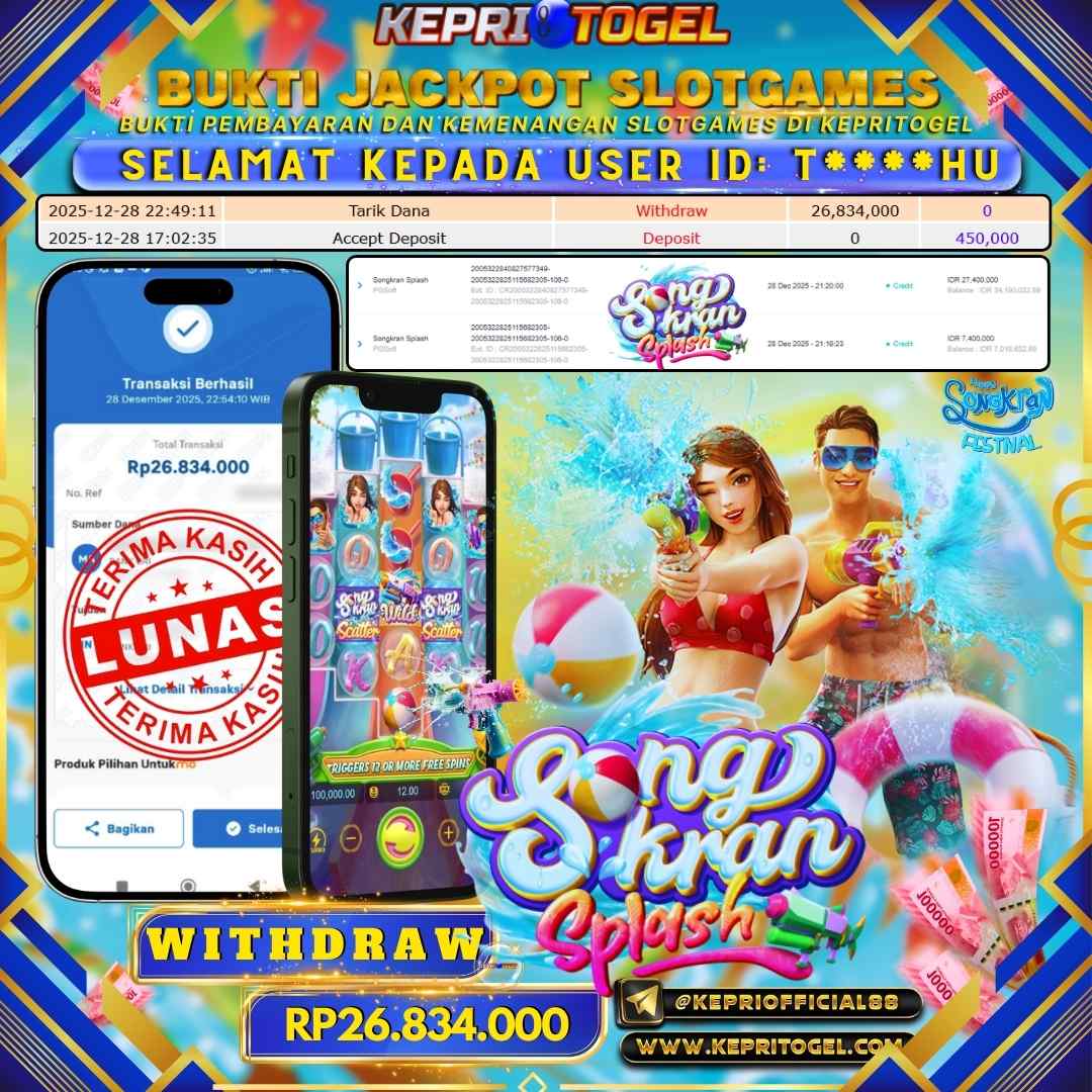 Kepritogel Jackpot Slot Songkran Splash Rp26,834,000