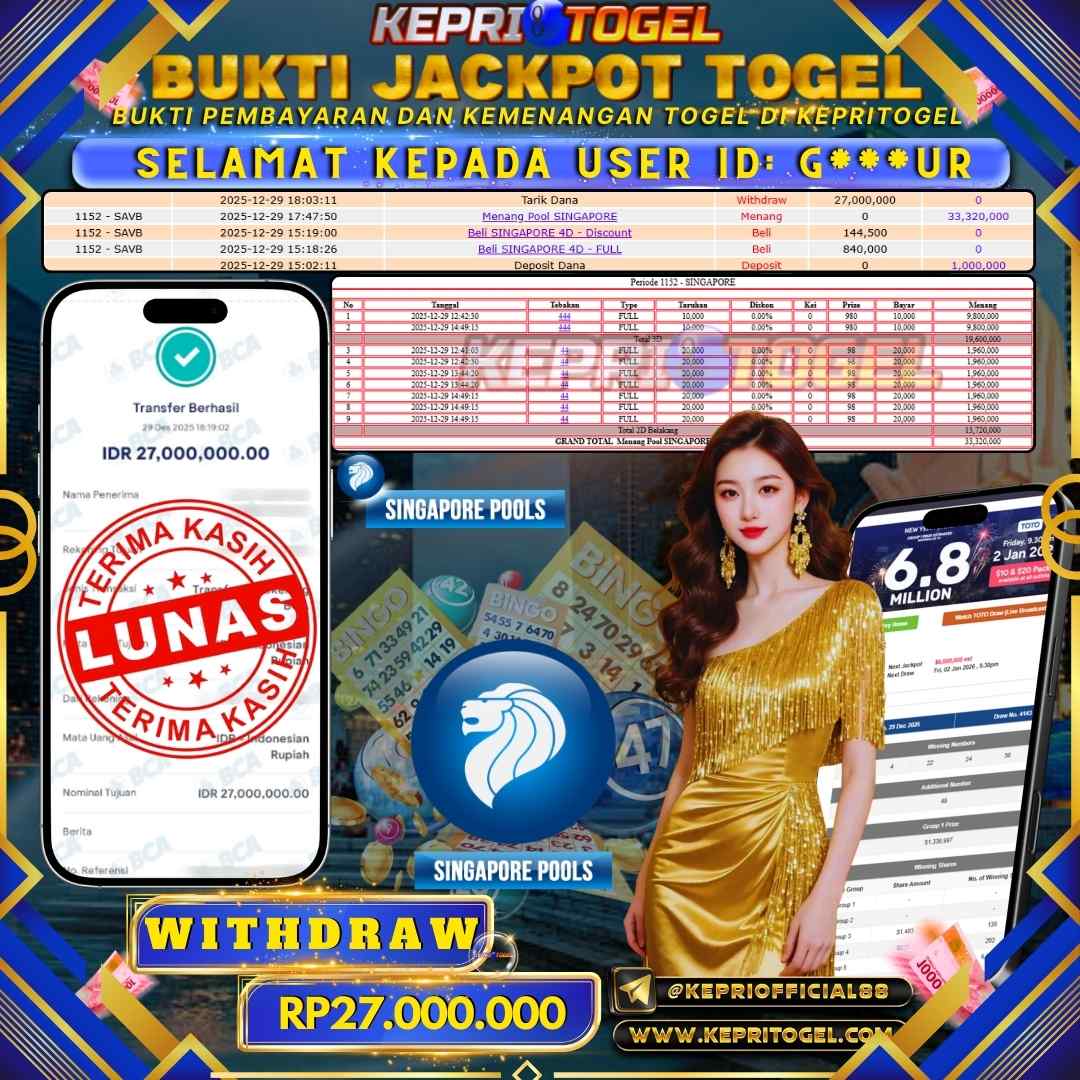 Kepritogel Jackpot Togel Singapore Pools Rp27,000,000