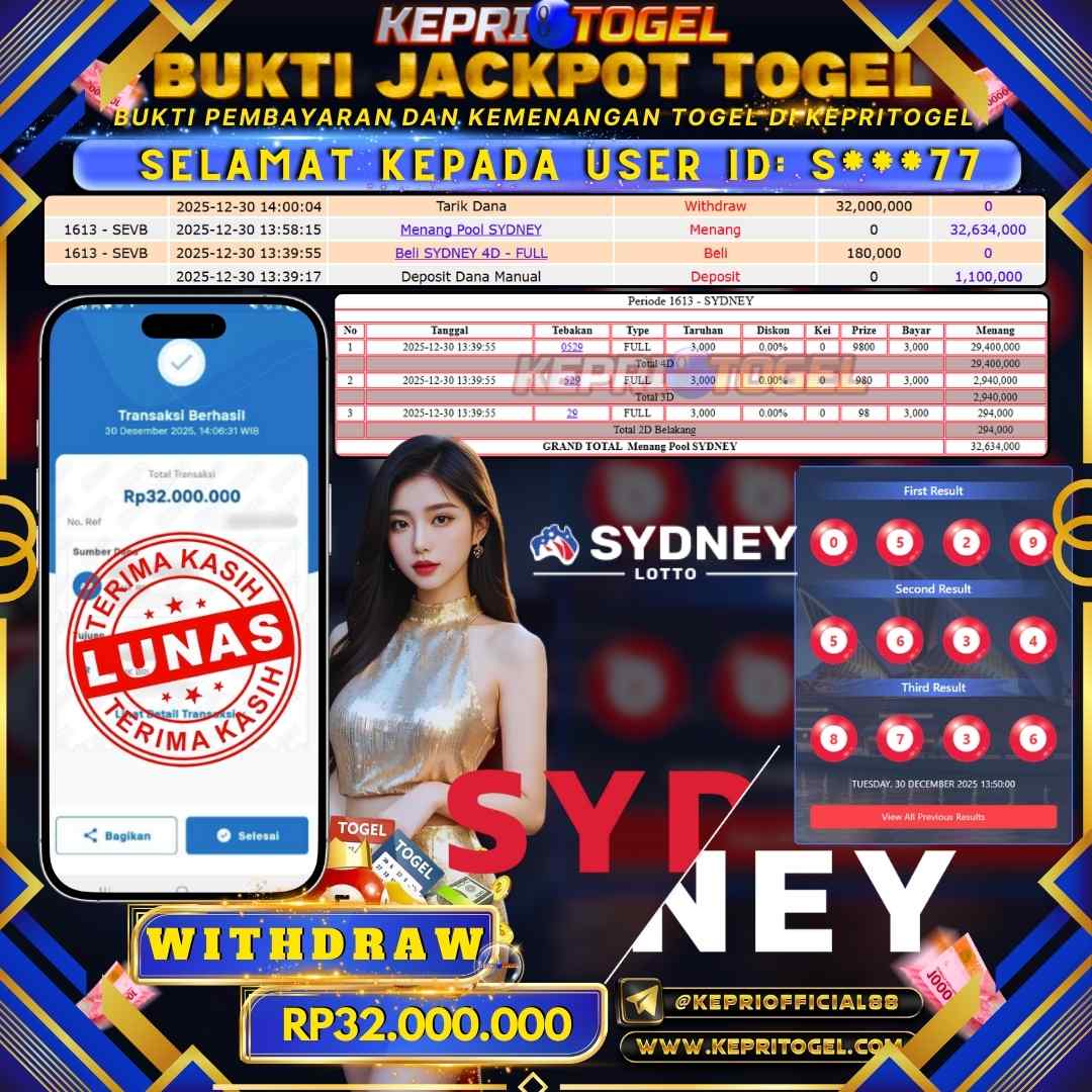 Kepritogel Jackpot Togel Sydney Lotto Rp32,000,000
