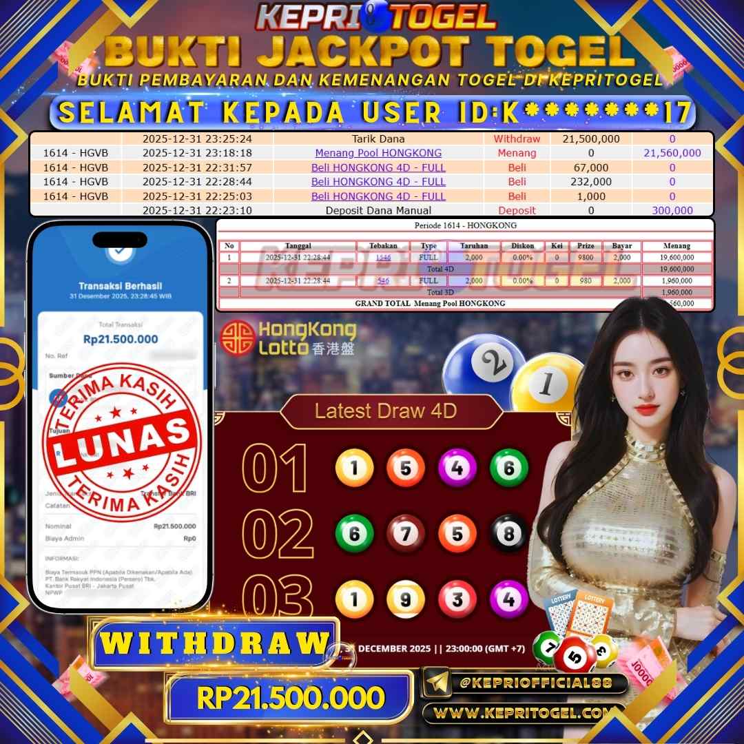 Kepritogel Jackpot Togel Hongkong Lotto Rp21,500,000
