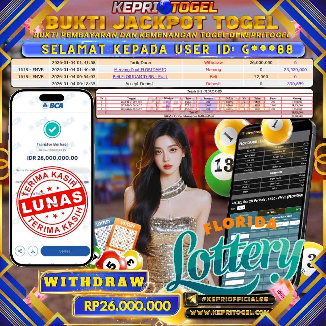 Kepritogel Jackpot Togel Florida Lottery Rp26,000,000