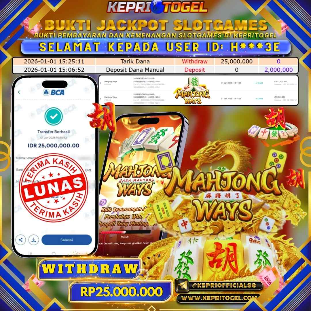 Kepritogel Jackpot Slot Mahjong Ways Rp25,000,000