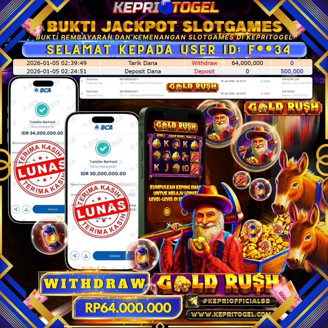 Kepritogel Jackpot Slot Gold Rush Rp64,000,000