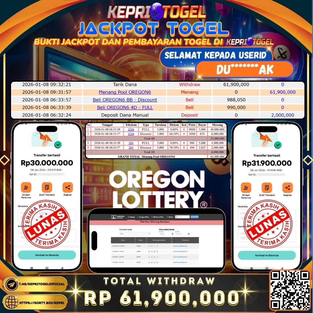 Kepritogel Jackpot Togel OREGON6 Rp61,900,000