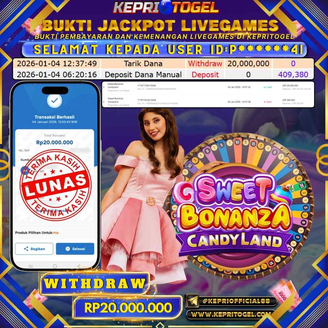 Kepritogel Jackpot Live Game Sweet Bonanza Candy Land Rp20,000,000