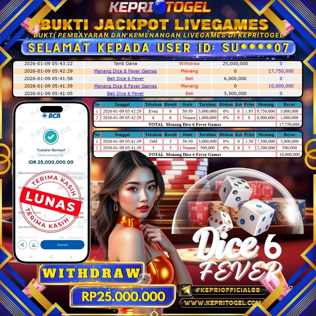 Kepritogel Jackpot Live Game DICE 6 FEVER Rp25,000,000
